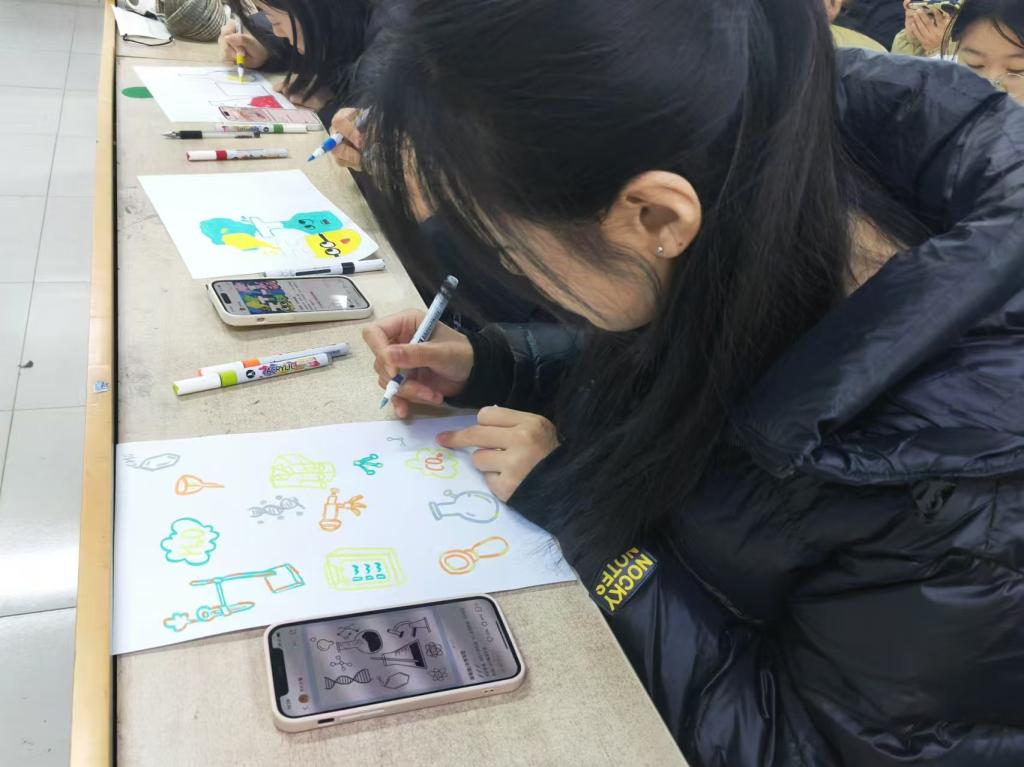 活动以传统文化为基础,巧妙融入化学知识。活动负责人展示了文化知识中的化学原理,让同学们深刻感受到化学的魅力和中华文化的博大精深。随后,同学们发挥想象力将文化与化学元素巧妙融合,设想多样的文化意象,创作蕴含祝福寓意的新词汇。参与成员根据自己对文化与化学的理解,绘制出彰显成语、对联等文化形式魅力的作品,展现出文化与化学交织的独特美感。