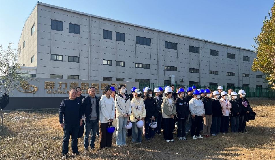 安全专题讲座后,2024级材料化学专升本2班全体同学在4名指导老师的带领下,赴德州市陵城区群力橡胶有限公司开展了认识实习。在企业技术人员的引导下,同学们有序进入生产车间与研发区域,重点学习了双向拉伸聚丙烯薄膜等核心产品的全生产流程。了解生产设备与工序细节,尤其针对新型膜材料制备中的工艺参数控制、无机纳米粒子在橡胶改性中的应用等内容进行了深入学习。