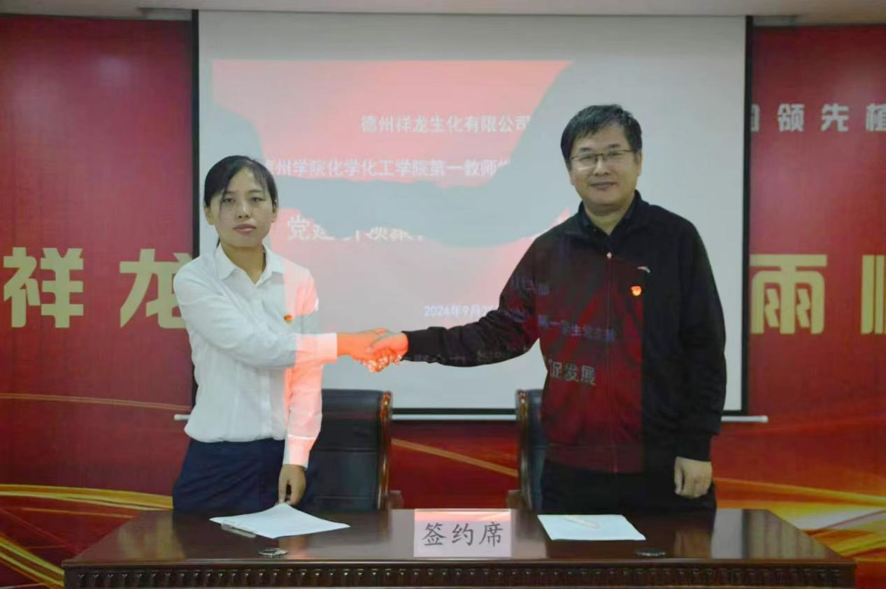 在新中国成立75周年之际,为深入学习贯彻党的二十届三中全会精神,促进人才培养与地方产业融合发展,探索党建引领下的产教融合育人新路径,推动校企双方在党建及合作领域深度互融、资源共享。9月25日上午,Beat365正版唯一官网必一赴德州祥龙生化有限公司开展校企党建联建活动。学院党政负责人、师生党员、学生代表30余人参加。