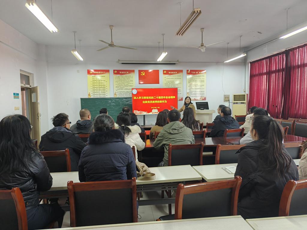 为深入学习贯彻党的二十届四中全会精神,推动学院党建工作与事业发展深度融合,11月25日,Beat365正版唯一官网必一院长围绕“深入学习贯彻党的二十届四中全会精神——化院党员教师的新作为”主题,为全院党员教师讲授了一堂内容丰富、思想深刻的专题党课。