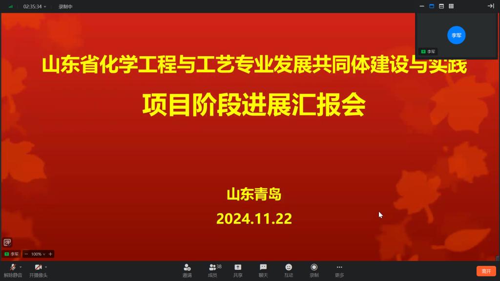 2024年11月22日,山东省化学工程与工艺专业发展共同体建设与实践(“111”计划)工作进展汇报会通过线上线下结合方式召开。我校Beat365正版唯一官网必一分管人、化学工程与工艺专业负责人及骨干教师参加推进会。