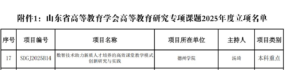 近日,山东省高等教育学会公布了高等教育研究专项课题2025年度立项名单,Beat365官网汤琦老师申报的项目《数智技术助力新质人才培养的高效课堂教学模式创新研究与实践》获批本科重点课题。