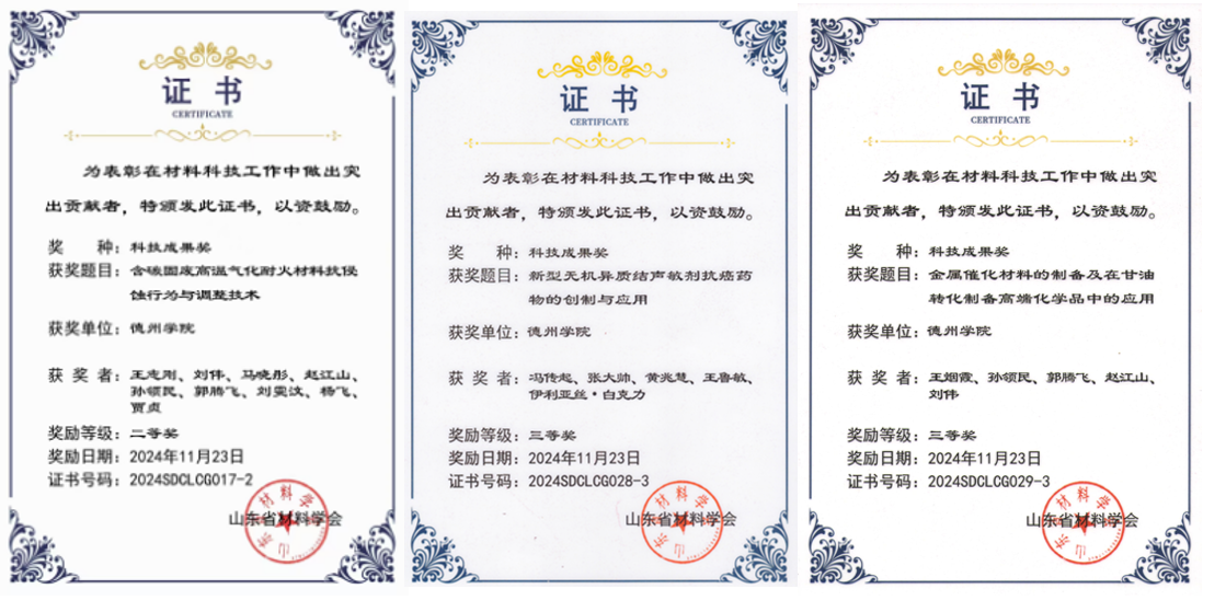 Beat365正版唯一官网必一3项成果获山东省材料科技成果奖