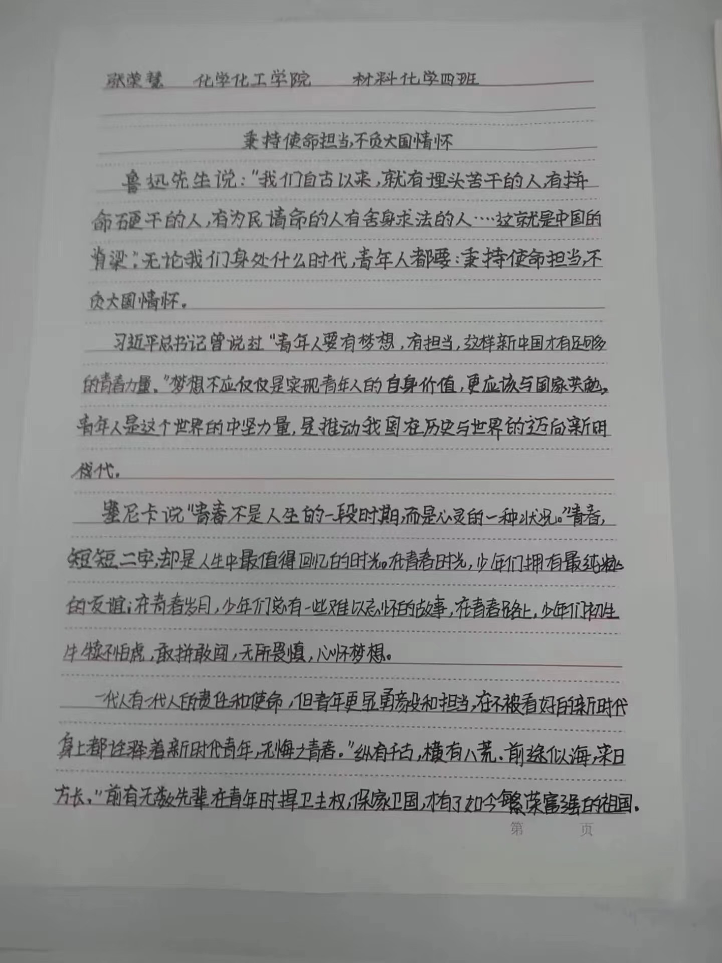为深入学习贯彻党的二十大精神,引导学生厚植爱党、爱国、爱社会主义的情感,展现学生跟党奋进新征程、青春建功新时代的心声和行动,Beat365正版唯一官网必一举办了“青年共话新时代”主题征文活动,呼吁同学们执笔抒怀,通过文字形式展现当代青年的社会担当。