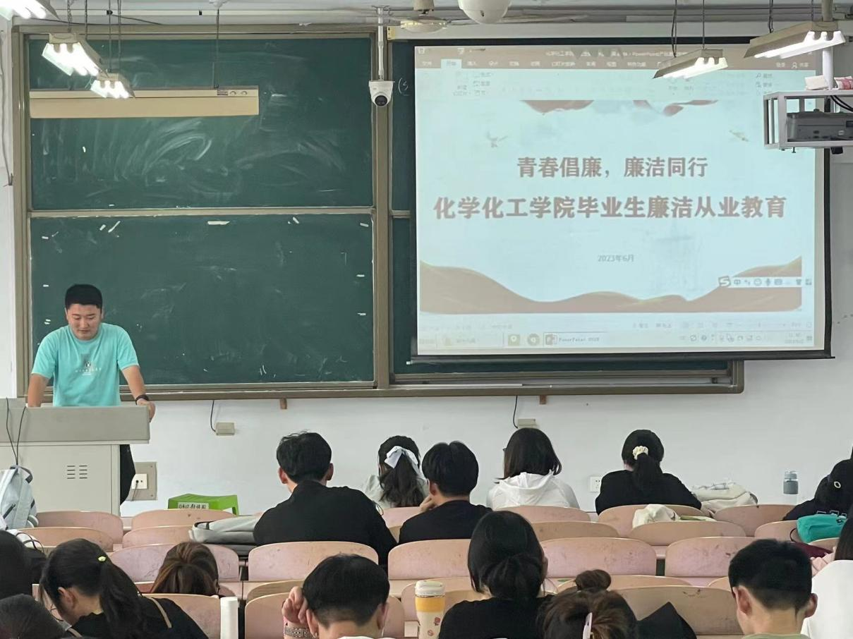 会上,辅导员老师从典型案例、案例剖析、相关概念和犯罪预防四个方面出发,以毕业生走上工作岗位可能遇到的“雷区”、不同年龄、职业、职位的廉洁纪律警示案例,为毕业生上了一堂生动的廉洁从业教育课,强调了贪污腐败与年龄、职业、职位高低无关,要求新时代青年学子要将廉洁文化内化于心,外化于行,培养清正廉洁的价值理念,永葆新时代青年人的本色。