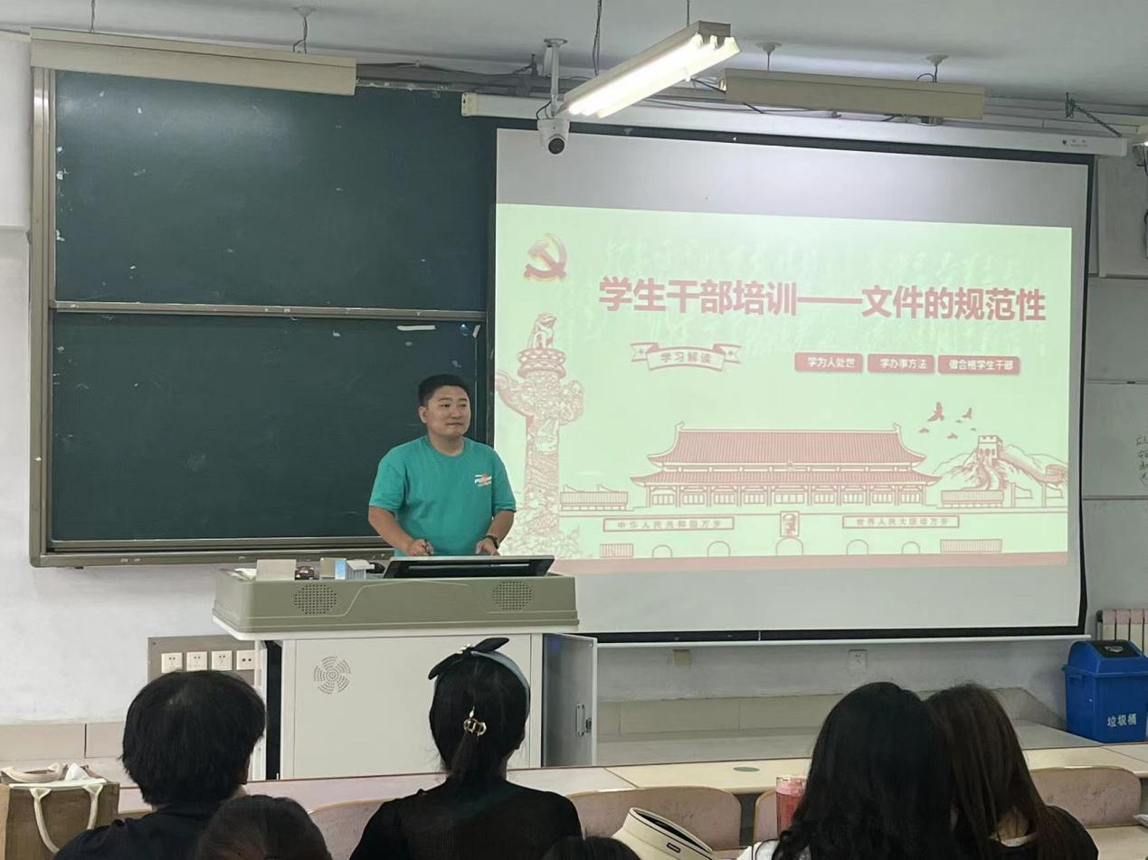 会上,辅导员以具体文件为例,详细介绍文档、表格等常用文件的规范性。通过师生互动问答的方式,强调行文格式规范要求,明确指出学生干部应该了解和学习制作文件的规范性,要强化责任意识、规范意识,勇于担当作为,提高学习能力,努力成为新时代优秀学生干部。