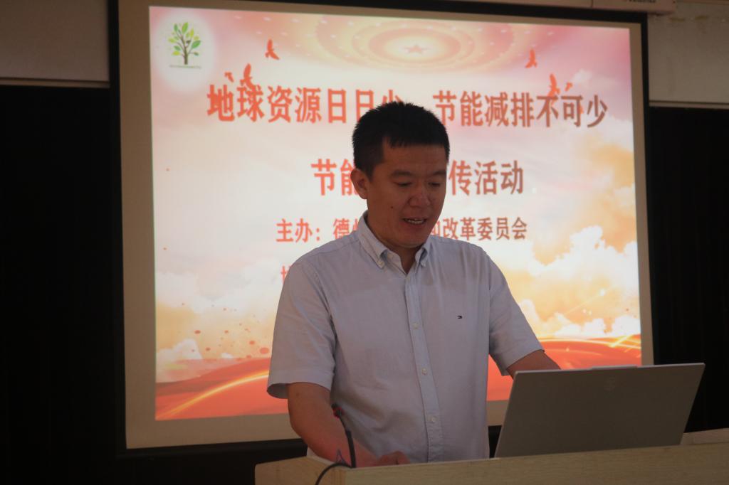 为深入开展学习贯彻习近平新时代中国特色社会主义思想主题教育,贯彻习近平生态文明思想。6月5日,世界环境保护日当天,德州学院Beat365正版唯一官网必一特邀德州市发展和改革委员会、德州市环境保护产业协会于求实楼215开展“地球资源日日少 节能减排不可少”节能减排活动。学院团委书记主持,2019级和2021级环境工程1班、2班团支部参加。