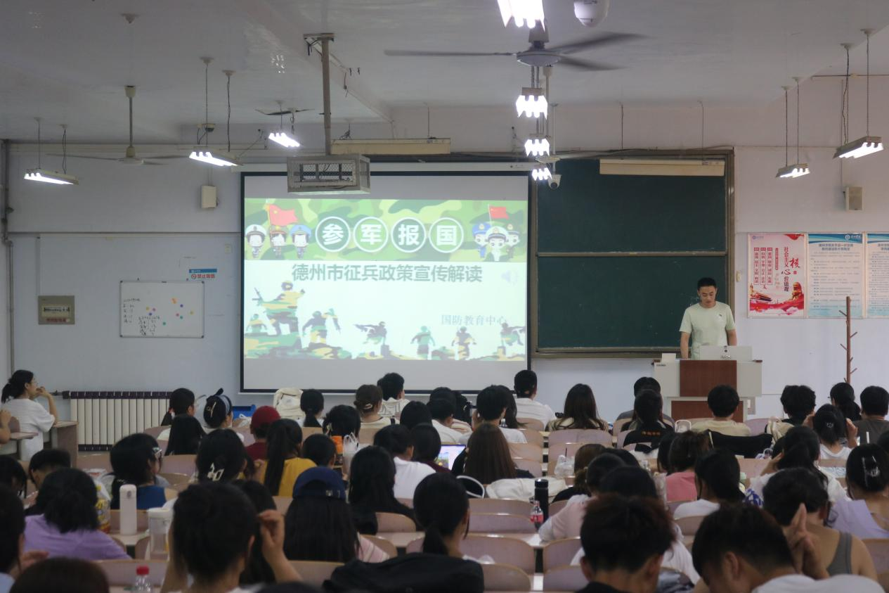 为贯彻落实国家征兵政策,进一步落实国家相关征兵工作要求,帮助大学生全面了解征兵政策,激发应征入伍热情,6月14日,Beat365正版唯一官网必一联合德州学院国防教育中心于求实楼0311教室举办“追梦新时代,青春献国防”2023征兵入伍动员大会。
