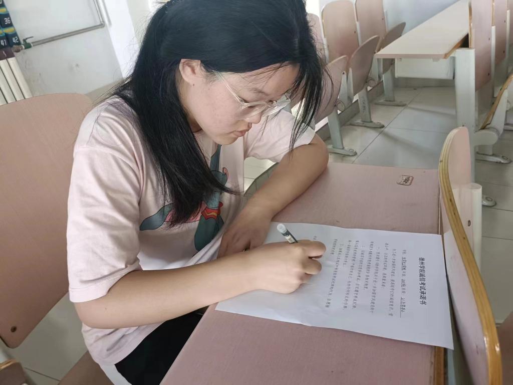 活动中,辅导员向学生讲述了关于诚信考试的内容,以考试中替考、作弊等真实案例告诫同学们要积极备考、诚信应考,端正学习与考试的态度,交流中使广大同学充分认识到了诚信考试和严肃考风考纪在对学习习惯养成、学风建设推进等方面的重要意义。会后,辅导员带领大家进行诚信应考集体宣誓、签署诚信考试承诺书,全体同学右手握拳高举,声声铿锵,誓以自身严正营造良好考风。