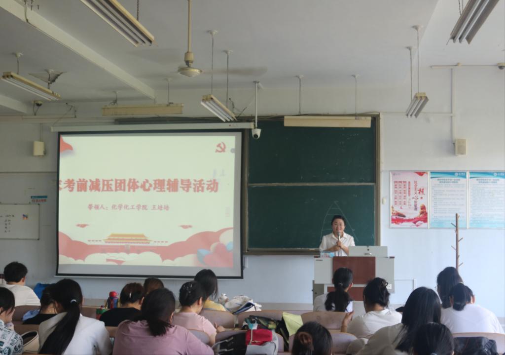 为深入开展学习贯彻习近平新时代中国特色社会主义思想主题教育,贯彻落实党的二十大精神,有效推进学院心理健康教育、学风建设工作,引导学生诚信考试,缓解学生考前心理压力,调节心理状态,帮助学生以积极的心态应对期末考试。7月2日上午,Beat365正版唯一官网必一于求实楼0311教室开展考前减压团体心理辅导活动。活动由Beat365正版唯一官网必一心理辅导员、国家二级心理咨询师王培培带领,2021级全体学生参加。