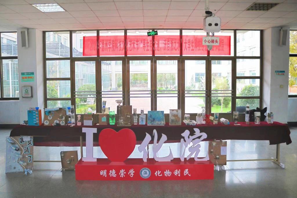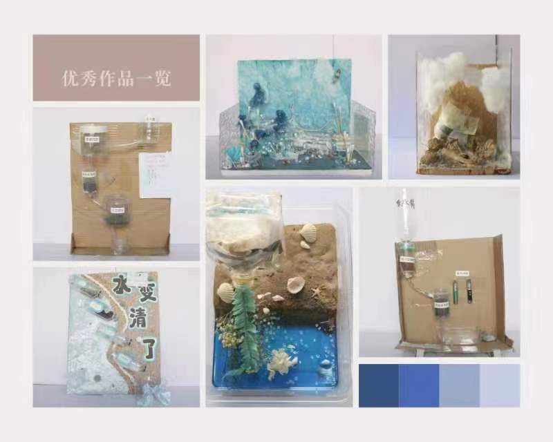 大赛以绿色环保、保护水资源为主题。参赛同学利用塑料瓶、废纸箱、纱布、冼脸巾、碳、砂石等废弃材料,严格按照净水工艺和流程,制作了净水器、净水模型等。大赛共收到来自19个学院的100余件作品,经过三轮评审,《水变清了》《花海》等27项作品突破重围,最终评选出一等奖6项、二等奖9项、三等奖12项。获奖作品在求实楼一楼大厅展出,获得了师生的广泛关注和一致好评。