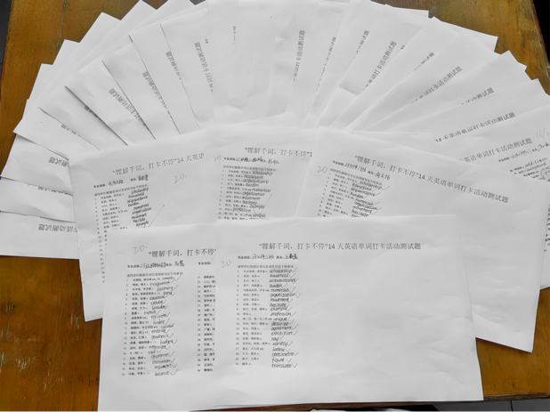 活动推出后,同学们积极参与,相互提醒、监督,每日上传截图,展示效果、分享经验,在广大同学中形成了一股学英语、记单词的热潮,为四六级考试打下坚实基础,自活动开展以来共有160余名同学参加,150余名同学全勤打卡。为检验学习效果,12月19日开展了线下的英语单词测试,同学们全力以赴,争取最好的成绩。参与学生纷纷表示收获满满,通过此次活动,找到了适合自己的学习英语方式方法,提高了学习效率。