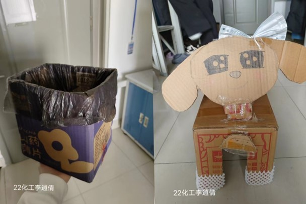 活动发起后,同学们热情高涨,积极参与,充分利用生活中的废弃物品,将创新的想法和灵巧的双手完美结合,通过裁剪、描绘、重组等方式,巧妙地将硬纸板、塑料品、干花、棉线、塑料瓶等废旧物品转化为抽纸盒、手机支架等一件件精美的手工作品。这些作品不仅体现了同学们的巧思和创意,更展示了他们对手工艺的热情和执着。废旧物品焕发出了新的生命,成为了具有实用性和观赏性的艺术品,使废弃物“变废为宝”再次展现价值,重新回归同学们的生活。每一件作品都是对雷锋精神的传承和发扬,同学们用实际行动践行习近平总书记关于生态文明思想、弘扬绿色环保的理念。