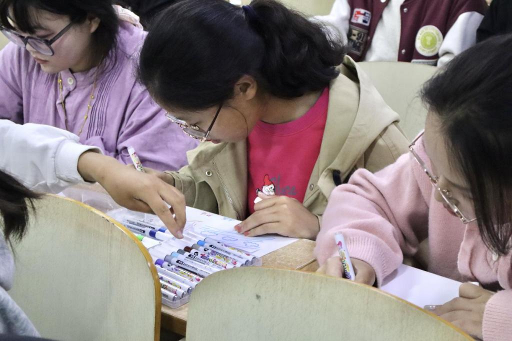 同学们满怀希望地为自己人生的各个关键期填写主题词,并且明确每个阶段在自己心中的主色调,随后用彩笔精心绘制属于自己的“缤纷人生”图。在绘图过程中,同学们充分发挥自己的想象力与创造力,每一笔都倾注了自己对不同人生阶段的独特理解。最后,负责人邀请同学们展示自己的“缤纷人生”。每一位同学的展示都像是在讲述一个独特的人生故事,台下的同学们也沉浸其中,感受着不同的人生视角。