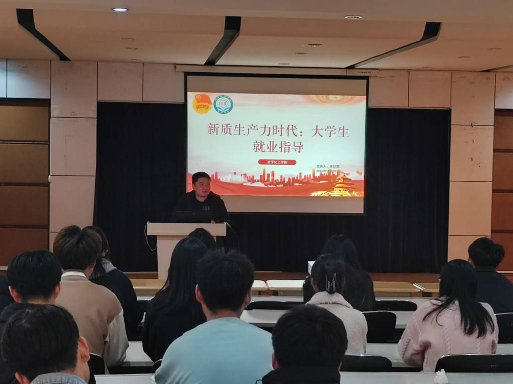 主讲人围绕“新质生产力时代:大学生就业指导”主题,对新质生产力的内涵、特征进行详细讲解,带领同学们了解新质生产力时代就业环境变化和职业规划的具体步骤,并给同学们普及大学生创业的一般流程,帮助大家确立目标,提升自身素质,加强自身思想道德建设,增强青年的就业能力。