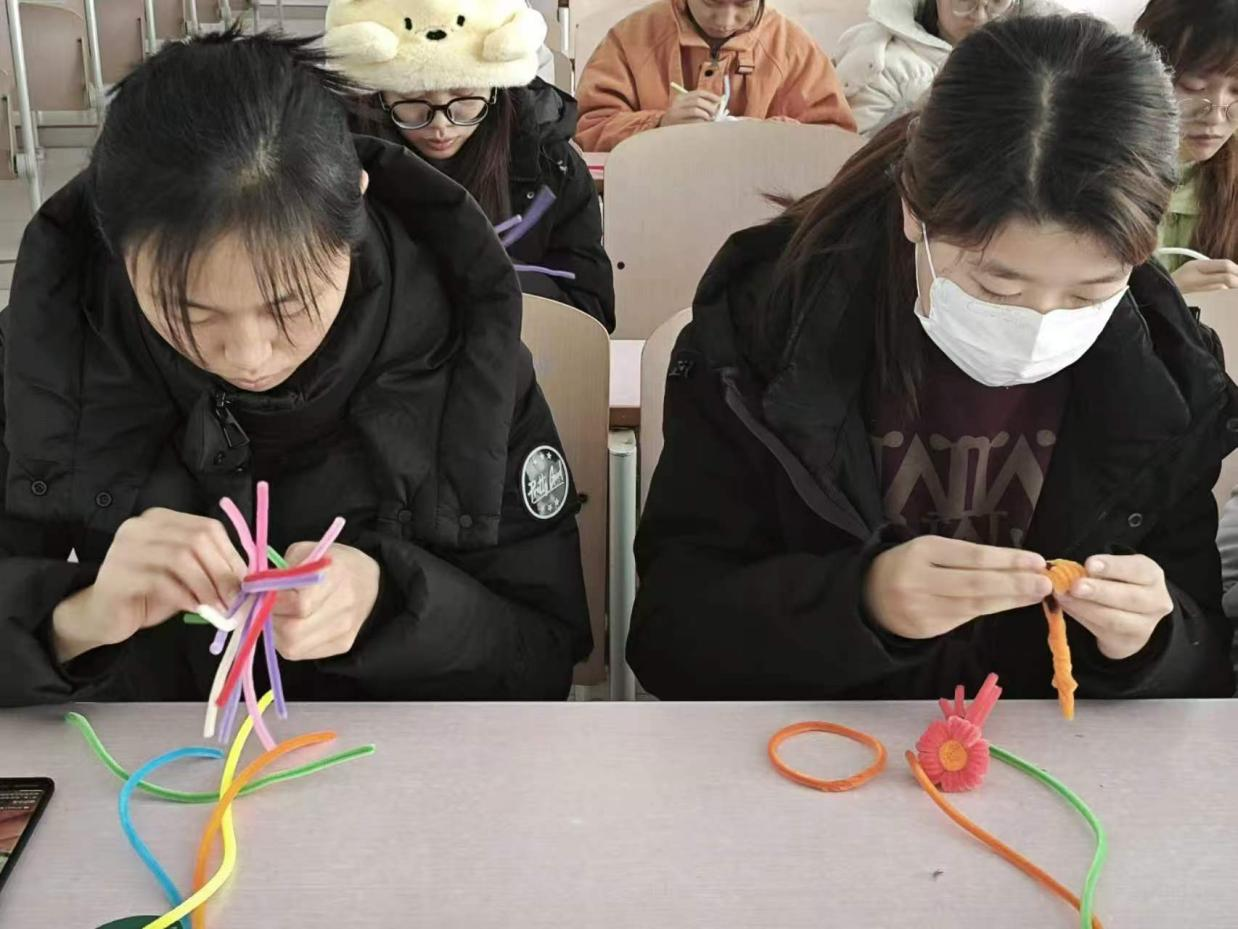 活动现场,五彩斑斓的扭扭棒在同学们手中巧妙变身。大家充分发挥想象力与创造力,将一根根扭扭棒弯曲、缠绕、拼接。从精致花朵到可爱玩偶,各种创意作品纷纷呈现。同学们专注投入,相互交流技巧与创意灵感,欢声笑语不断。