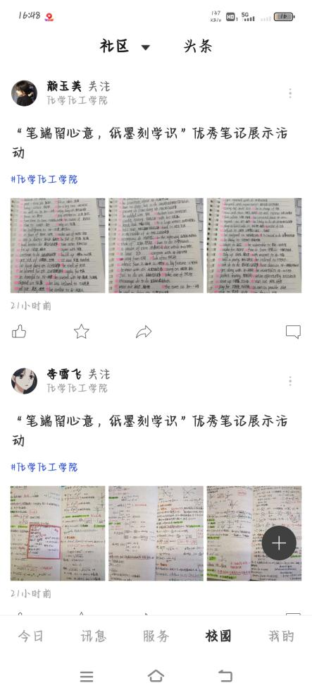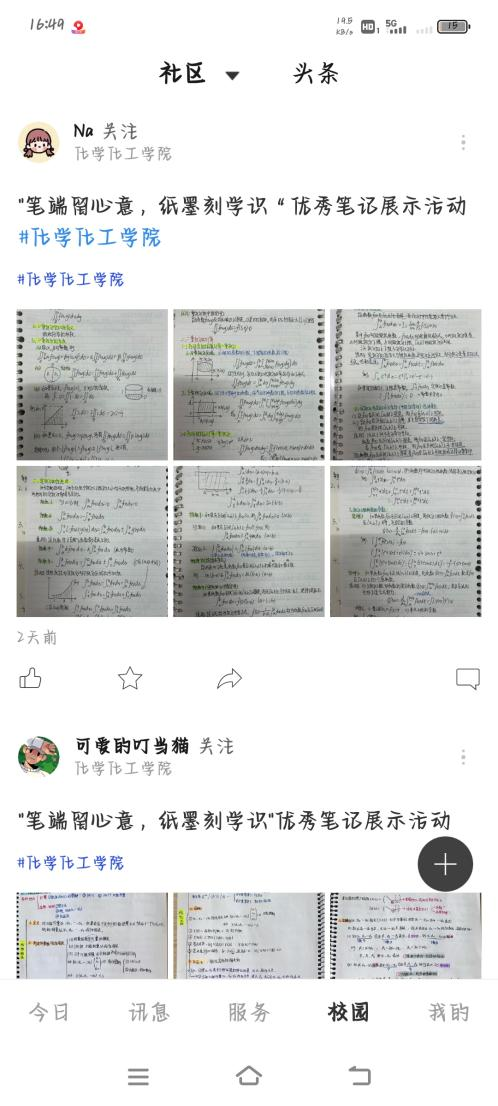 活动自开展以来,吸引了很多同学的积极参与。参与的同学将自己的学习笔记在今日校园上发布出来,有的笔记注重知识的积累,有的笔记注重学习过程的梳理,有的笔记体现出解题思路和方法等。同时,同学们都可以通过今日校园社区看到这些笔记,从中感受到知识的力量。