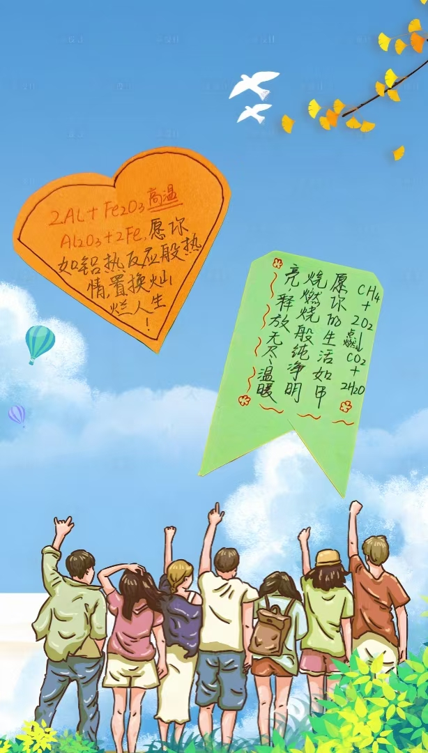 学院通过形式多样的教育活动,引导毕业生回顾成长历程,强化爱校荣校意识,培育社会责任担当。开展“心系母校 情寄未来”系列活动,毕业生通过撰写感恩信笺、制作成长纪念册、拍摄祝福视频等形式记录校园回忆。学院创新设计“化学反应方程式” 留言区毕业墙,以化学语言传递祝福;定制化学方程式祝福书签,将暖心寄语融入专业特色,激励毕业生带着母校的殷切嘱托,以自信昂扬的姿态奔赴人生新征程。