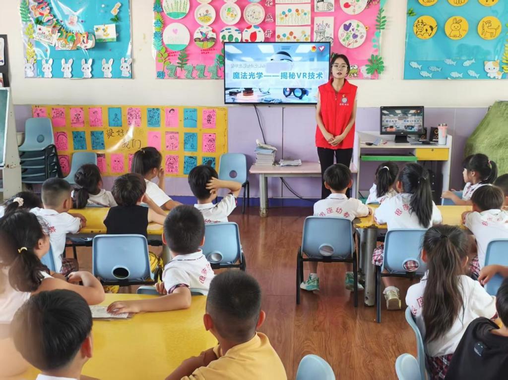 志愿服务队充分发挥化学专业优势,将抽象的科学知识转化为趣味实践。在“趣味实验工作坊”中,孩子们亲手制作小肥皂,理解化学变化的奇妙;“大象牙膏”实验则让孩子们直观感受化学反应的力量,激发科学兴趣。科技体验与工程启蒙环节同样精彩,孩子们在“魔法光学・揭秘VR”课程中动手制作简易VR眼镜,体验科技魅力;“吸管建筑挑战”则通过团队协作,搭建出创意作品,培养了创新能力和团队协作精神。此外,“变废为宝”DIY手工作坊也倡导了资源循环理念,让科学改变生活的认知深入人心。