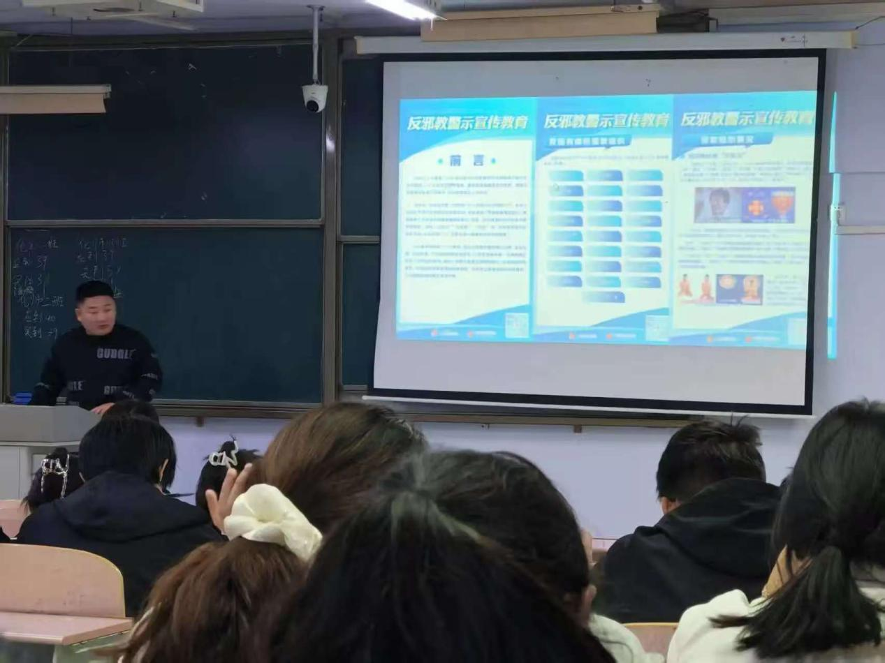活动中,主讲老师系统介绍了邪教组织的基本特征、社会危害及其常见骗术,并结合我国已依法认定的邪教组织实例,深入剖析了邪教侵蚀思想、破坏家庭、危害社会的典型案例。引导学生树立正确的防范观念,提升对邪教诱惑的“免疫力”。同学们认真聆听、积极互动,纷纷表示,将在今后的学习与生活中,持续提高警惕,自觉增强反邪辨邪能力,对一切邪教活动做到不听、不信、不传,发现可疑情况及时上报,坚决维护校园环境的和谐与稳定。