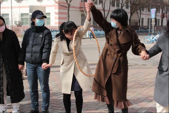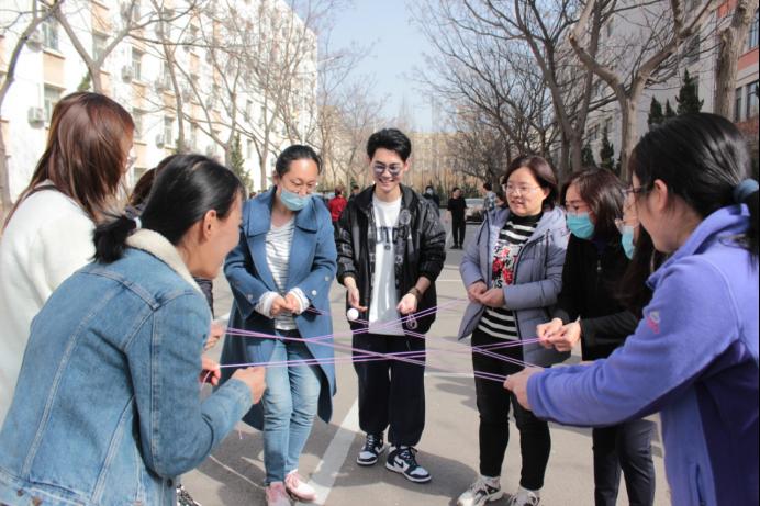 此次活动所有教职工分为四组,分别进行游戏,游戏由“坐地起身”“逃脱困境”“一圈到底”和“四通八达”四部分组成,用时最短组获胜。在活动中,各位老师充分发扬团结协作、积极向上的精神,全身心投入到比赛中。整个比赛过程紧张激烈又趣味横生,现场热闹非凡,气氛活跃。