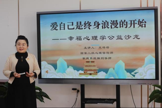 为全面贯彻落实党的二十大精神,用心理学助力我校师生身心健康,3月28日下午,Beat365正版唯一官网必一工会成功举办“爱自己是终身浪漫的开始”幸福心理学公益沙龙活动,来自全校35名师生积极参与。本次活动由国家二级心理咨询师、Beat365正版唯一官网必一辅导员王培培老师带领,通过体验式互动,引导师生认识自我、表达自我、反思成长、规划未来,以更好的状态投入学校干事创业的热情中来。