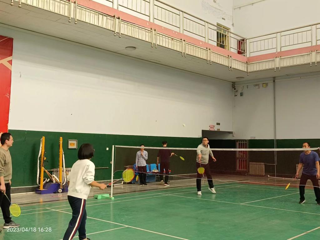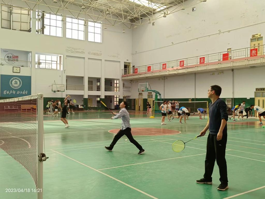 成立仪式后,羽毛球队立即开始首场训练,举行了男单、混双训练赛。老师们纷纷拿着球拍,上场开打。训练场上,老师们顽强拼搏,紧密配合,挥洒汗水,矫健的身姿,灵活的回球,处处营造着积极、健康、愉快的气氛,展现出乐观向上的精神风貌,最后老师确定了今后的训练时间和地点。