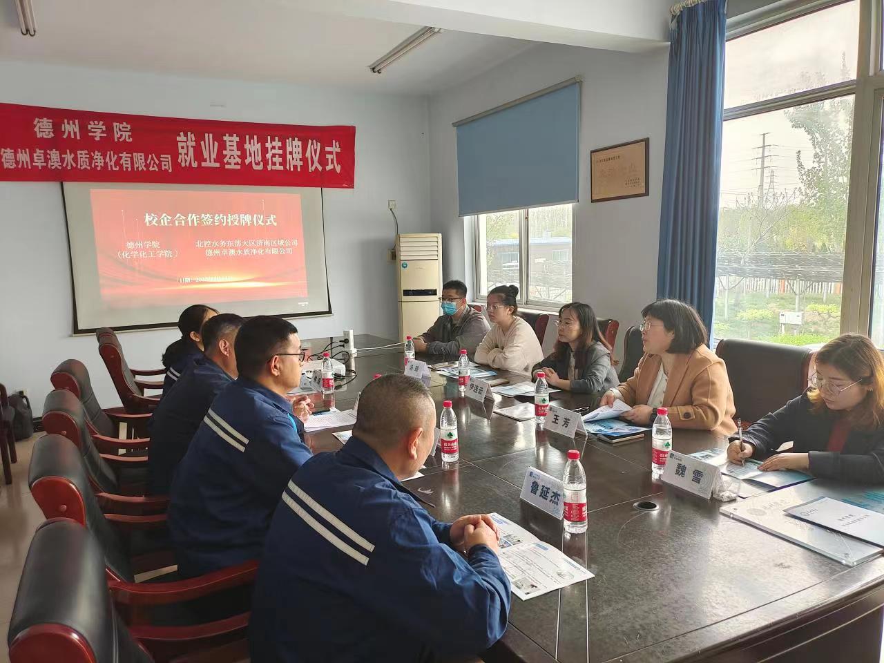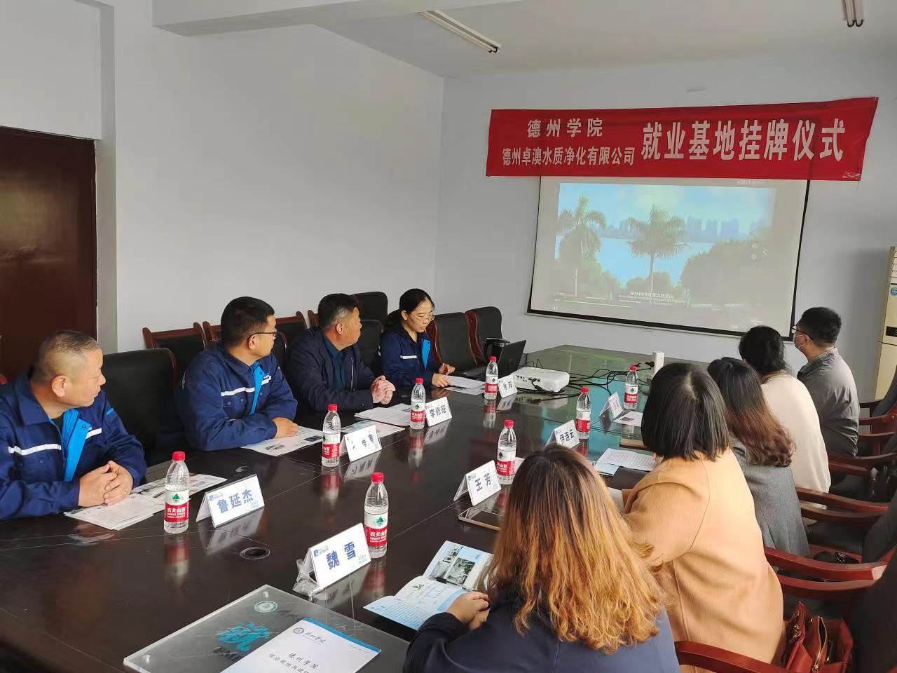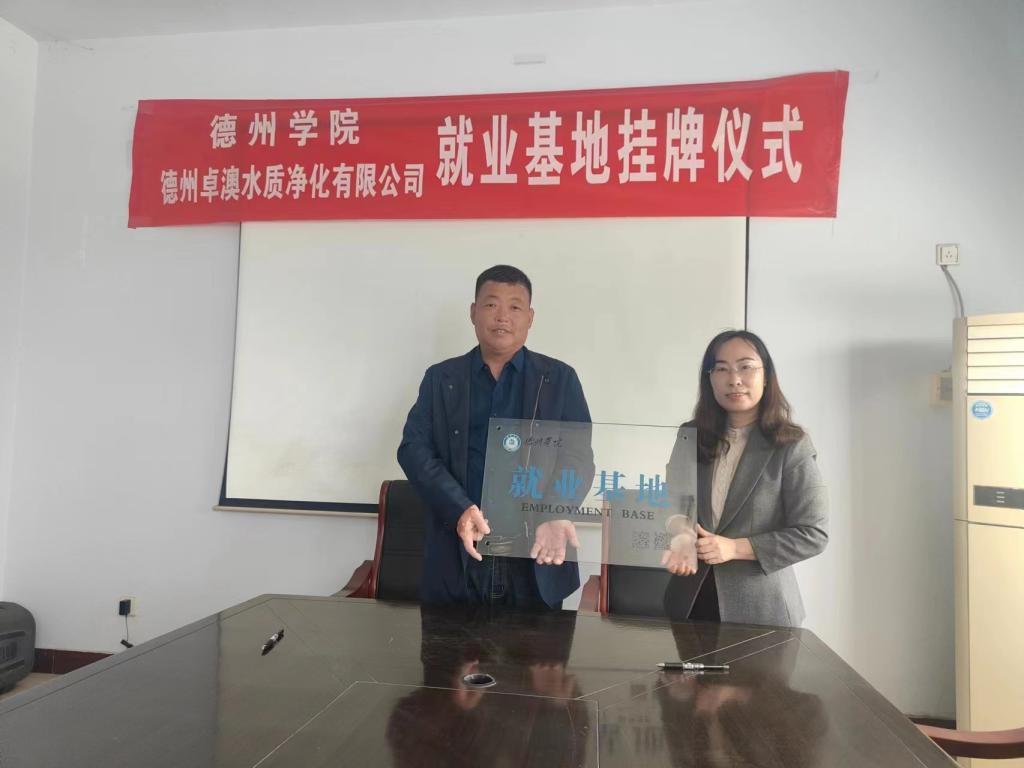 4月14日,Beat365正版唯一官网必一深入开展“访企拓岗”促就业系列活动,与德州卓澳水质净化有限公司举办就业基地挂牌仪式。Beat365正版唯一官网必一党委书记、系主任、辅导员,德州卓澳水质净化有限公司总经理等相关负责人参加仪式。