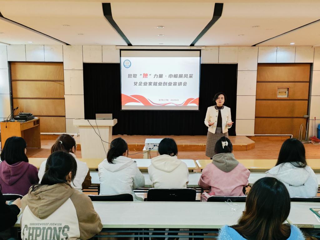 主讲人结合自身经历,与同学们分享了新时代女大学生应该如何自我定位、树立理想、提升综合素能、就业创业、重塑形象等内容,为在座的每一位女大学生上了一堂生动且有价值的就业创业励志课和思政课。她提出三点希望:一是希望女同学们树立爱国之心,把自己的理想和对美好生活的向往同时代和祖国的需要紧密相连;二是希望女同学们发扬“巾帼不让须眉”的精神,在创新创业道路上书写精彩人生;三是进一步更新就业观念,增强创新创业意识,以积极的向上心态走向社会。同学们纷纷表示被女企业家顽强拼搏、永不服输的创业精神所感染,唤醒了女性的成长力量,对未来有更加明确的目标。