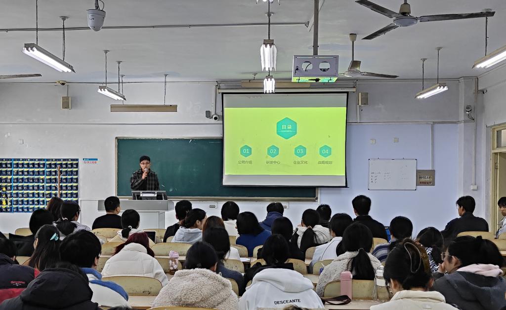 会上,企业围绕公司简介、公司研发中心、企业文化、战略规划等方面进行介绍,对公司发展历程、人才需求、薪资待遇、公司福利、升职要求等方面进行了详细的讲解,帮助毕业生们更全面了解就业市场和岗位信息,并与毕业生们积极互动,进行现场答疑。会后,公司负责人对有意向的毕业生进行了面试。