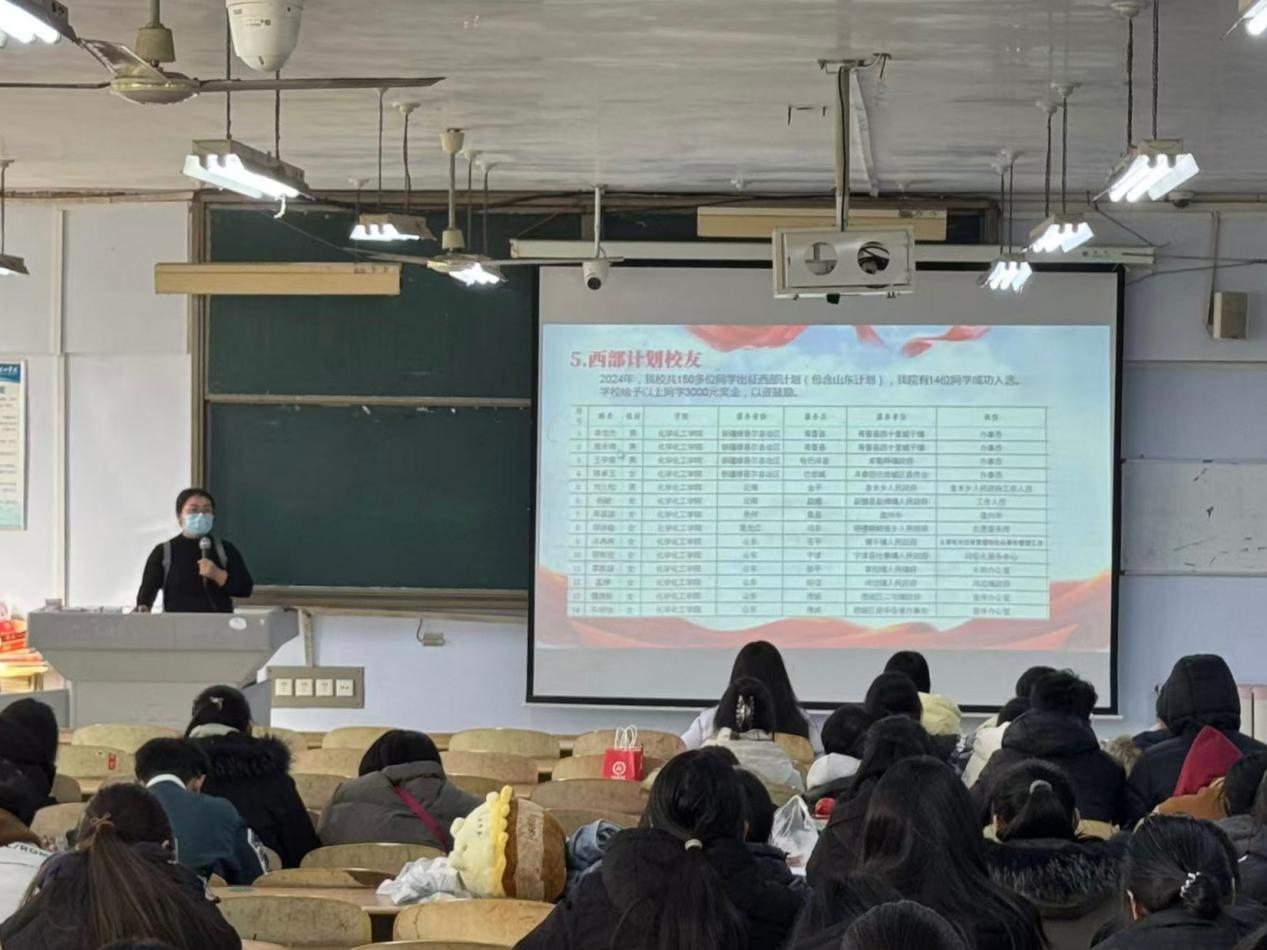 学院团委书记聚焦西部计划,鼓励广大毕业生积极响应国家号召,投身到西部计划中,用青春力量助力西部发展,让青春在祖国最需要的地方绽放绚丽之花。毕业班辅导员对2025年的征兵工作进行讲解,详细解读了当前的征兵政策、入伍条件、报名程序以及相关待遇等内容,鼓励毕业生投身军营、报效祖国。