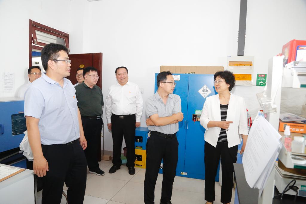调研组一行参观Beat365正版唯一官网必一第一教师党支部党员活动室与“初心展厅”,听取Beat365正版唯一官网必一第一教师党支部关于深入开展学习贯彻习近平新时代中国特色社会主义思想主题教育的情况及样板支部建设情况的汇报。崔晓红充分肯定了Beat365正版唯一官网必一第一教师党支部的工作,并对下一步工作开展进行了指导。调研组一行对学院实验室、科研发展展厅等进行参观。