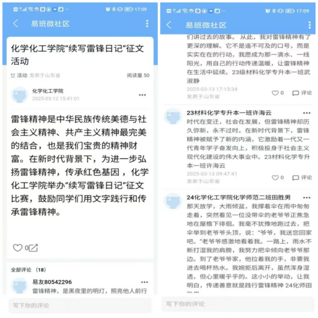 依托学科特色创新实践载体,推动雷锋精神在专业土壤中落地生根。“续写雷锋日记”征文活动鼓励学生融合化学元素,将雷锋的“螺丝钉精神”类比为“催化剂”,用钠的活泼、碳的稳定等化学性质诠释奉献精神。“春‘锋’十里,温暖传递”明信片寄语活动中,学生以化学元素为灵感,把钠(Na)的“热情似火”、铂(Pt)的“历久弥坚”等特性融入祝福语,制作出独具学科特色的明信片。“刻绘雷锋精神,传承时代风尚”手工制作活动里,学子们用刻刀刻绘雷锋形象,将雷锋精神与化学科研的精益求精精神紧密结合。