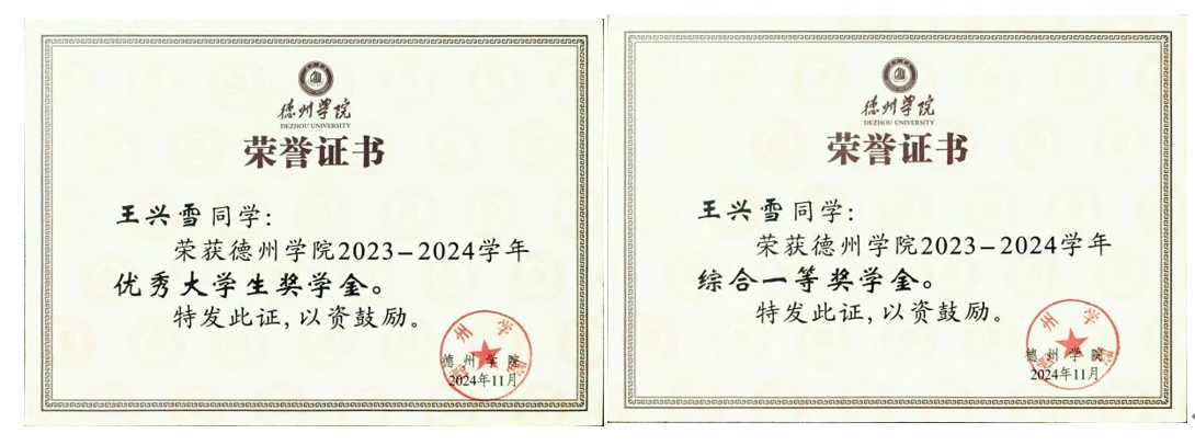 王兴雪,中共预备党员,Beat365正版唯一官网必一2022级环境工程专业学生。现任班级组织委员兼心理委员,怀瑾握瑜、品学兼优,手握1次国家奖学金、2次国家励志奖学金,3次斩获德州学院优秀大学生奖学金、综合一等奖学金,还获评德州学院优秀共青团员、三好学生等多项荣誉。竞赛场上锋芒毕露,拿下第十三届全国大学生徕卡杯金相技能大赛国家个人二等奖、第五届山东省大学生金相技能大赛个人二等奖及团体三等奖;科研路上步履坚实,参与编写2篇中文核心期刊论文、1篇SCI三区论文,用实力诠释青年担当。